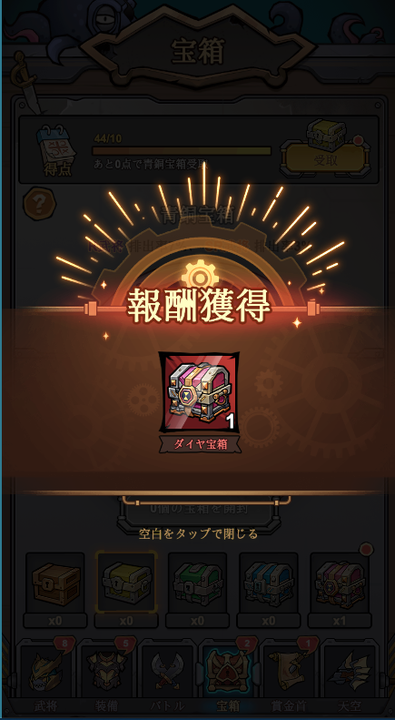 この得点が目標値に達すると、ボーナスとして「宝箱」を受け取ることができます。