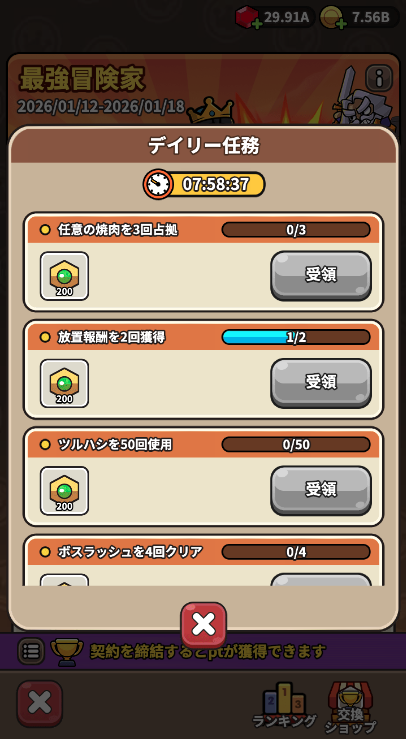 ランキングや任務達成で集めた「冒険コイン」は、イベント限定の【交換ショップ】で使用できます。