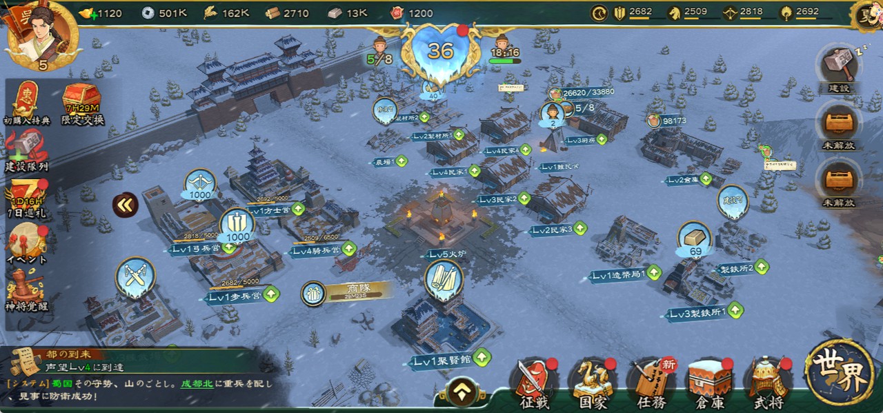 広大なワールドマップには、柴桑・南昌・合肥など、歴史に刻まれた名城が点在しています。武将を率いて城を包囲・陥落させれば、豊かな税収と戦略的優位を手に入れることができます。同盟を組んだプレイヤーと連携し、氷原の覇権を賭けて他プレイヤーとの頂上決戦に挑みましょう。