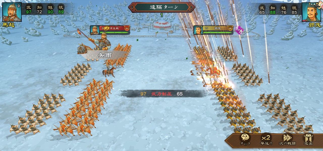 雪に覆われた戦場では、騎馬隊の激しい突撃、弓兵の風を切る矢雨、歩兵の壁となる密集陣形――フルオートで繰り広げられる戦闘が、まるで一枚の絵巻物のように展開します。馬超・許褚・関羽をはじめとする歴戦の猛将たちが、白銀の世界観に合わせた美麗グラフィックで登場。兵種の相性と陣形の組み合わせを極め、各地を荒らし回る黄巾賊や反乱軍を討ち滅ぼしましょう。