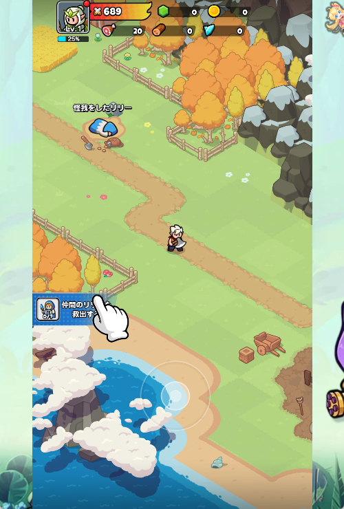 プレイヤーはヒーローを操作し、マップ上の霧を払いながら進みます。道中には「怪我をしたリリー」のように助けを待つ仲間たちがたくさん。彼らを救出し、自分だけの最強チームを作り上げましょう。