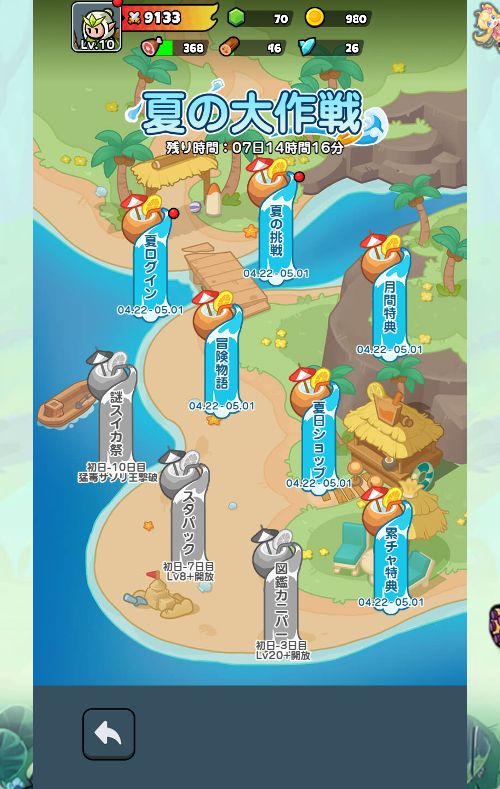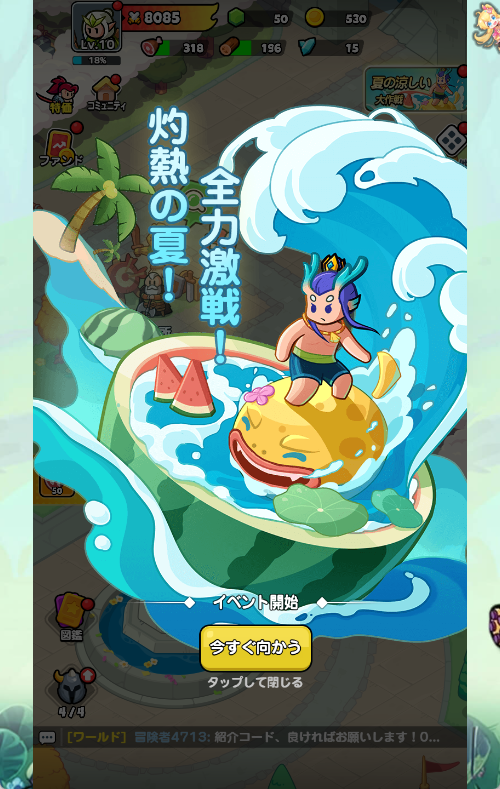 専用のイベントマップでは、スイカ祭やスタンプラリーなど、夏らしいコンテンツが盛りだくさん。ログインボーナスや限定ショップを活用して、冒険に役立つアイテムを大量にゲットしましょう!